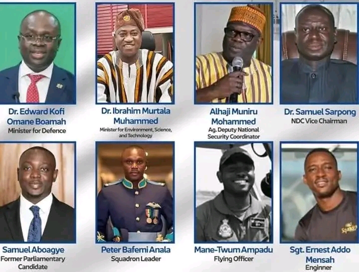 The ill-fated Z-9 utility helicopter was transporting several senior government officials, including Defence Minister Dr. Edward Omane Boamah, Environment Minister Dr. Ibrahim Murtala Muhammed, Acting Deputy National Security Coordinator Limuna Muniru, NDC Vice Chairman Samuel Sarpong, NADMO Deputy Director-General Samuel Aboagye, and three crew members all of whom perished in the crash.