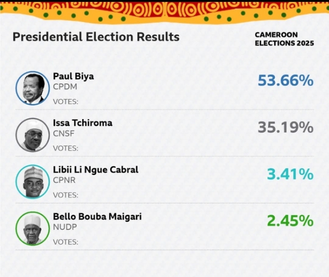 As Biya prepares to embark on another seven-year term, Cameroonians remain divided some viewing his victory as a symbol of continuity and experience, others as a sign of political stagnation and democratic fatigue.