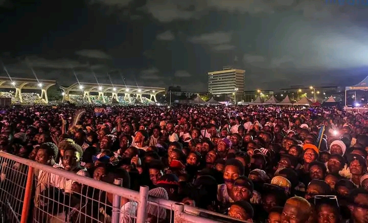 Although the free concert was scheduled to begin at 4:00 p.m., fans began arriving as early as midday. By sunset, the entire Independence Square was jam-packed with supporters, many of them dressed in white to celebrate the self-acclaimed Dancehall King.